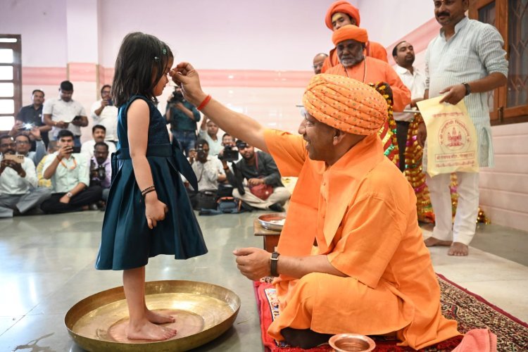 नवमी पर नारी शक्ति को नमन: सीएम योगी ने पांव पखारकर किया कन्या पूजन, लिया आशीर्वाद, गोरखनाथ मंदिर में गूंजा आस्था का महापर्व